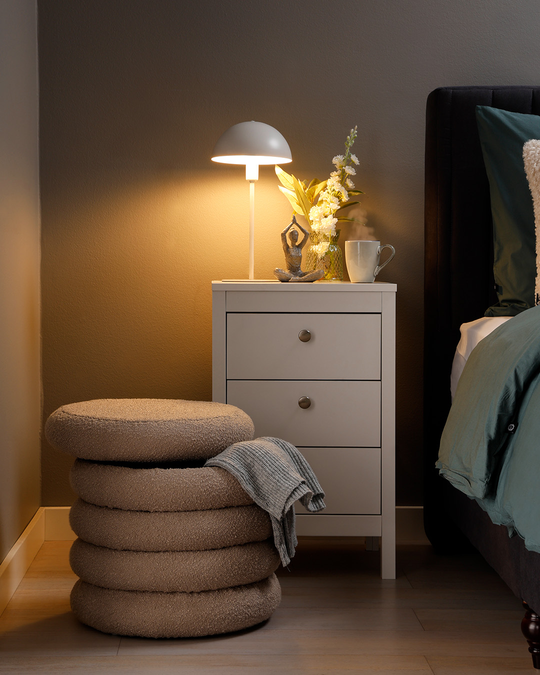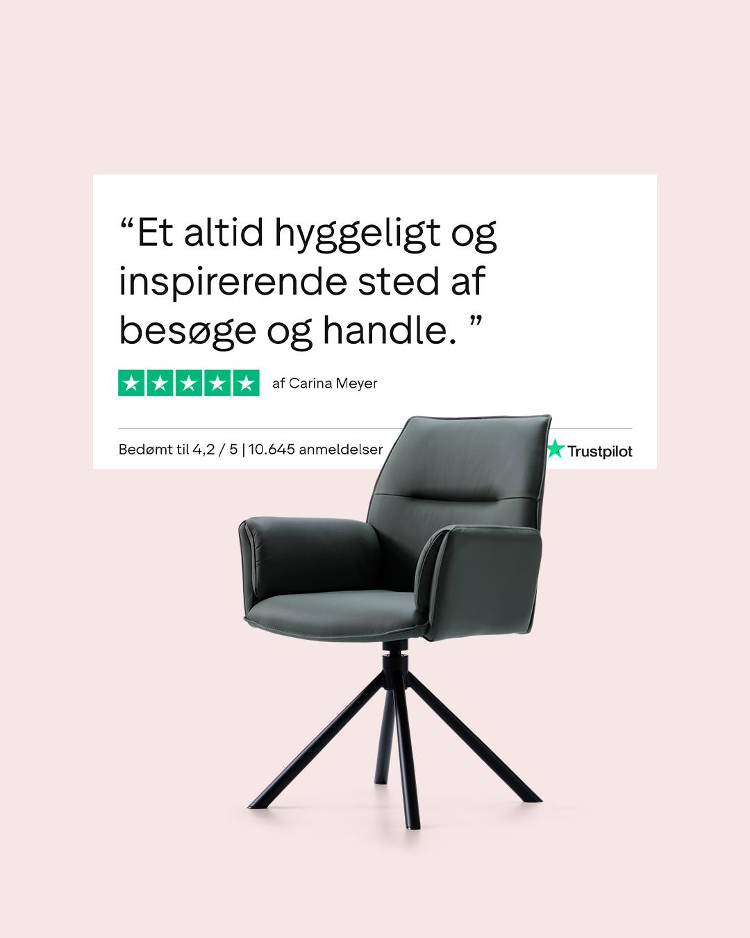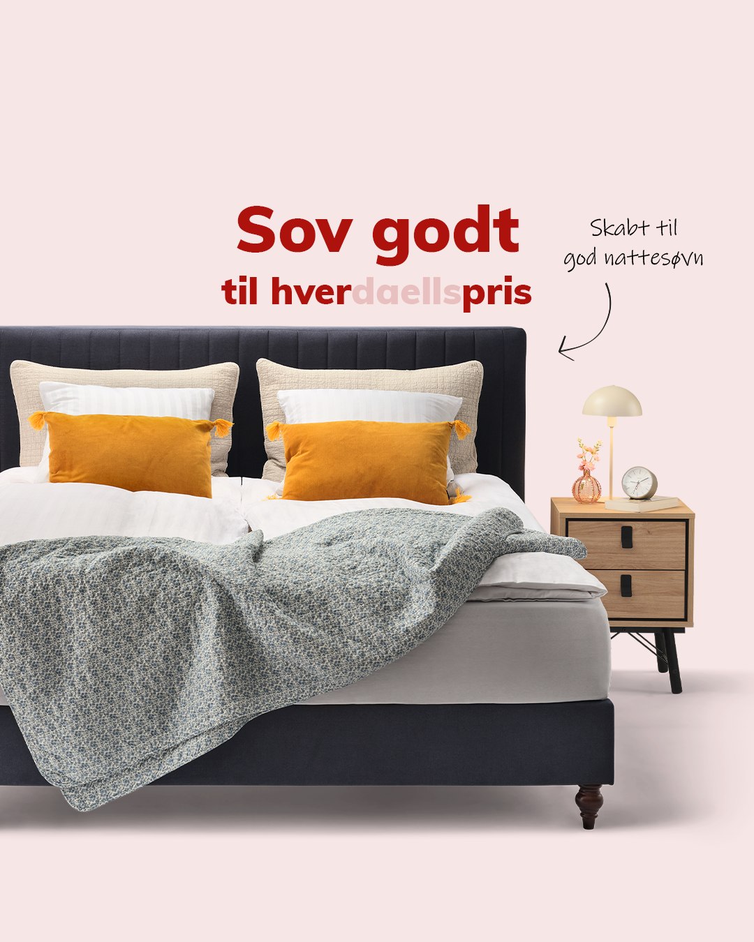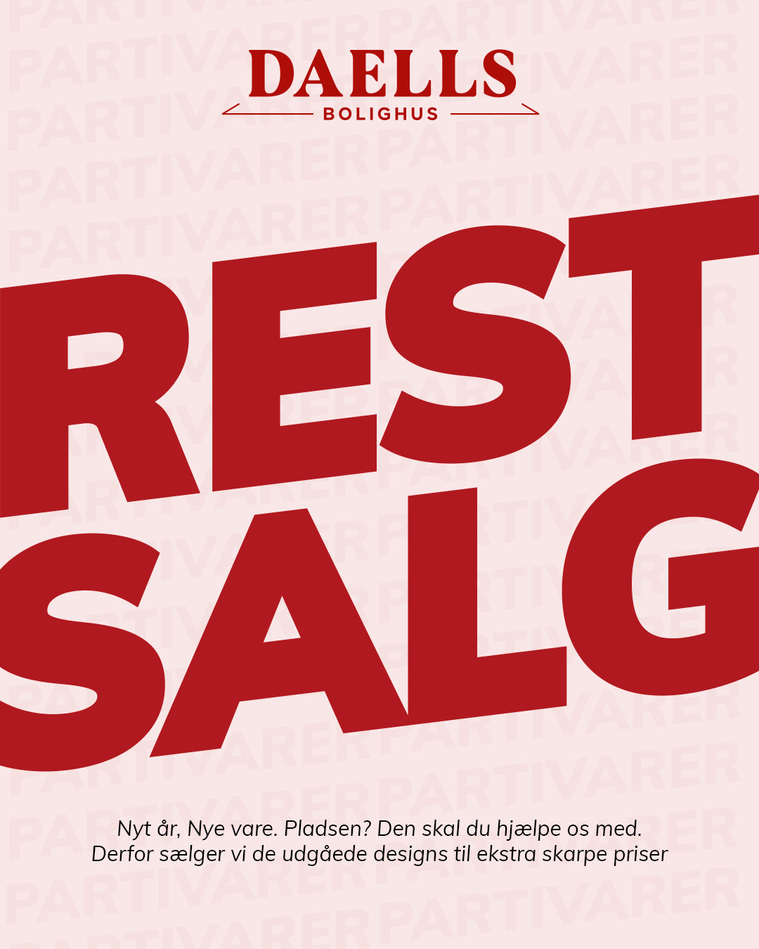 Hos Daells Bolighus finder du møbler og boligtilbehør til hjemmet – uanset stil, behov og budget. Til stuen har vi sofaer, sofaborde og mediemøbler – med mulighed for at designe din egen sofa. Til spisestuen tilbyder vi spiseborde, plankeborde, stole, vitriner og skænke. Vi har senge, garderobeskabe og natborde til soveværelset, og børneværelset kan indrettes med praktiske møbler og opbevaring. Du finder også alt til badeværelset, kontor og entré – fra spejle og skabe til skriveborde og knagerækker. Vores sortiment omfatter desuden lamper og smart belysning, opbevaringsløsninger, havemøbler og et stort udvalg af boligtilbehør som tæpper, puder og dekorative detaljer, der fuldender dit hjem.